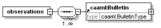 | source | <element name="observations"> <complexType> <sequence maxOccurs="unbounded"> <element ref="caaml:Bulletin"/> </sequence> </complexType> </element>  |
